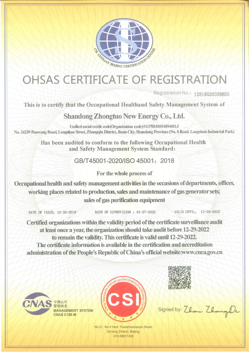 Zhongtuo ISO Three System Certificate